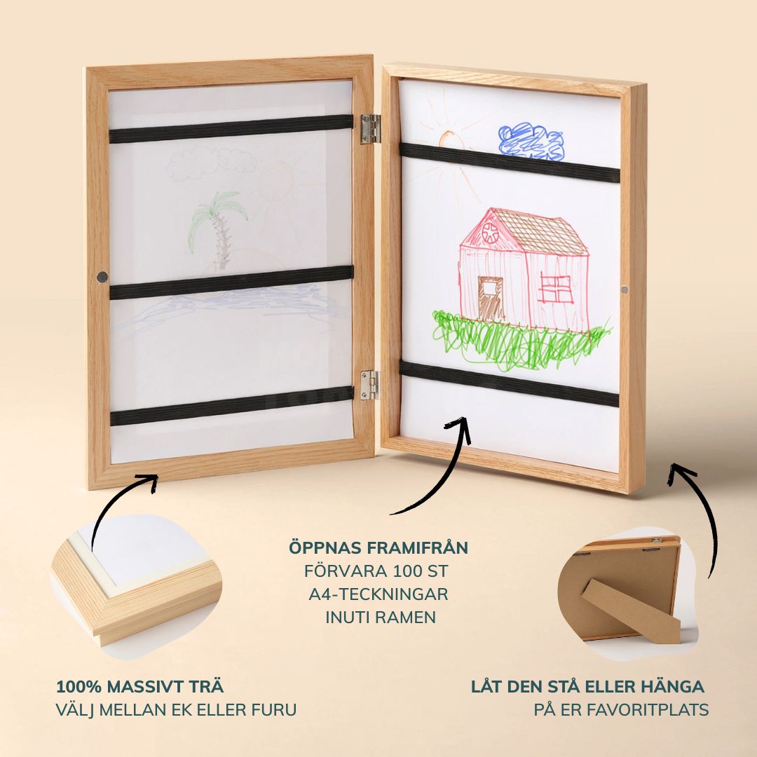 Varje teckning berättar en historia. Med vår Wooden Frame kan ni enkelt visa upp dagens favorit – och byta ut den på några sekunder. En dold magnet håller allt på plats, och den stilrena designen passar lika bra i barnrummet som i vardagsrummet.